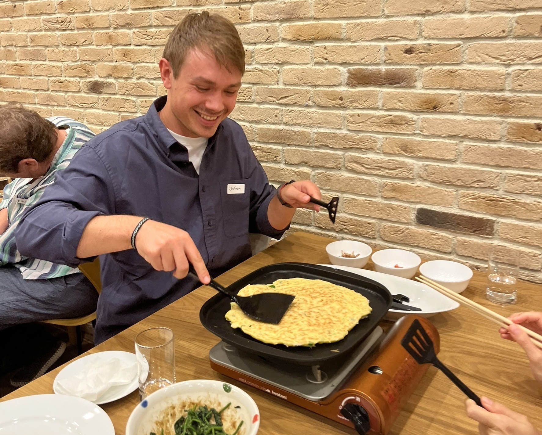 • Option 1: Okonomiyaki (Japanese Pancake) with Yakisoba, Tamagoyaki (rolled omelet), Spinach Salad and Miso Soup