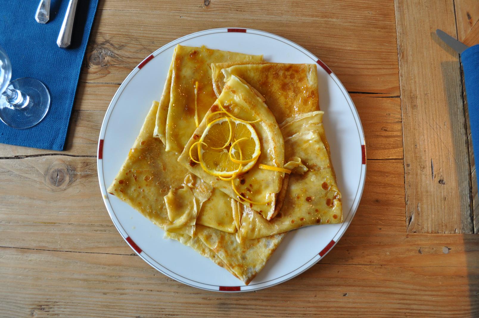 • Dessert: Tarte Tatin aux pommes / Tarte à la rhubarbe / Crème caramel / Moelleux au chocolat / Crêpes