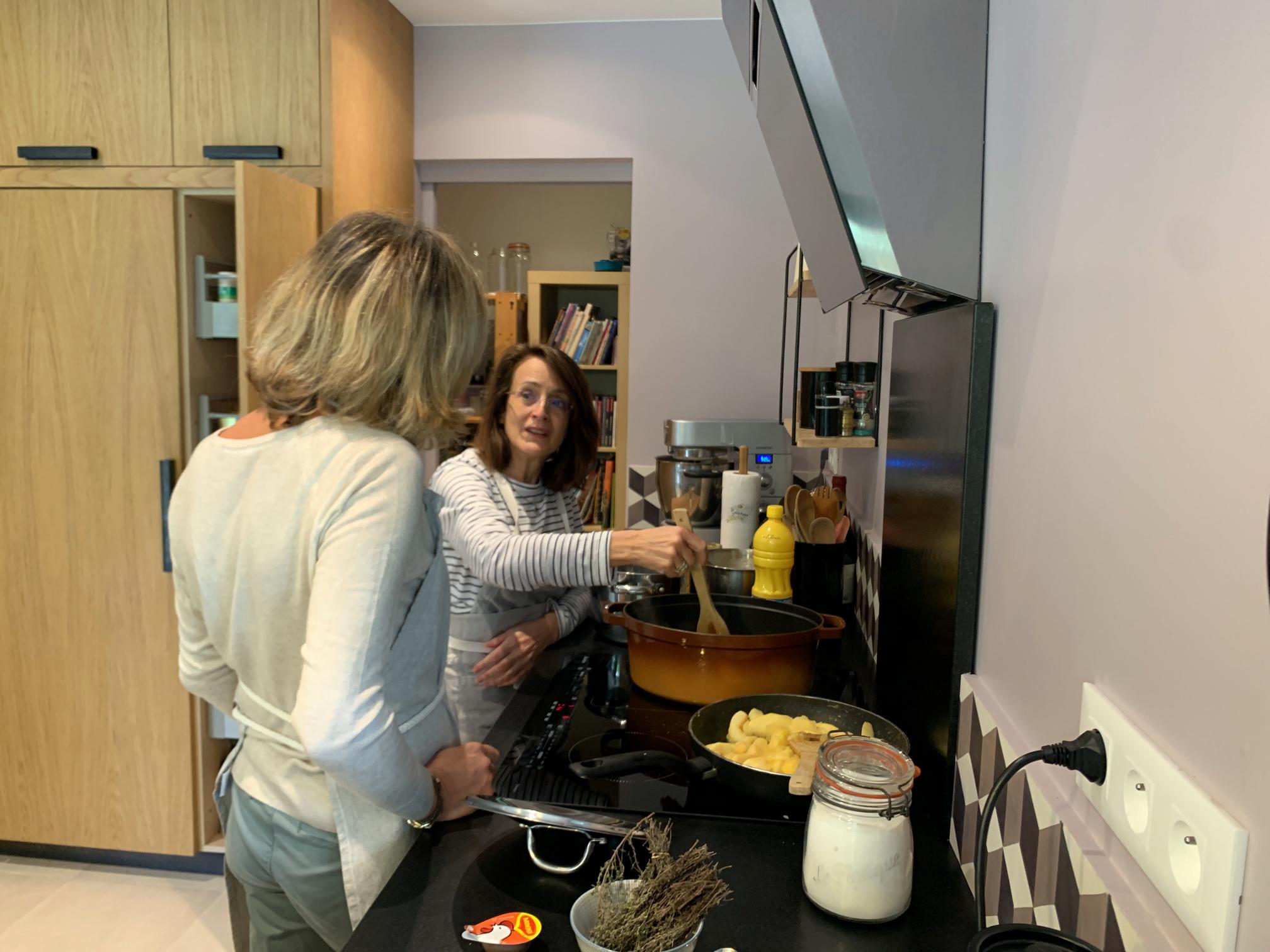 Cooking experience: (2-6 guests) Join Sibylle in her warm Annecy home kitchen for an authentic small-group French cooking class. Together, you will prepare a fresh, seasonal three-course French meal - starter, main dish, and dessert. Sibylle will share her best recipes and teach you the techniques and savoir-faire that define traditional French cuisine. During your 2-hour Annecy cooking class, you will cut, slice, simmer, and cook a delicious seasonal lunch. Once the meal is ready, you’ll sit down together at a beautifully set table adorned with silverware, crystal glasses, and candles for a true French dining experience.