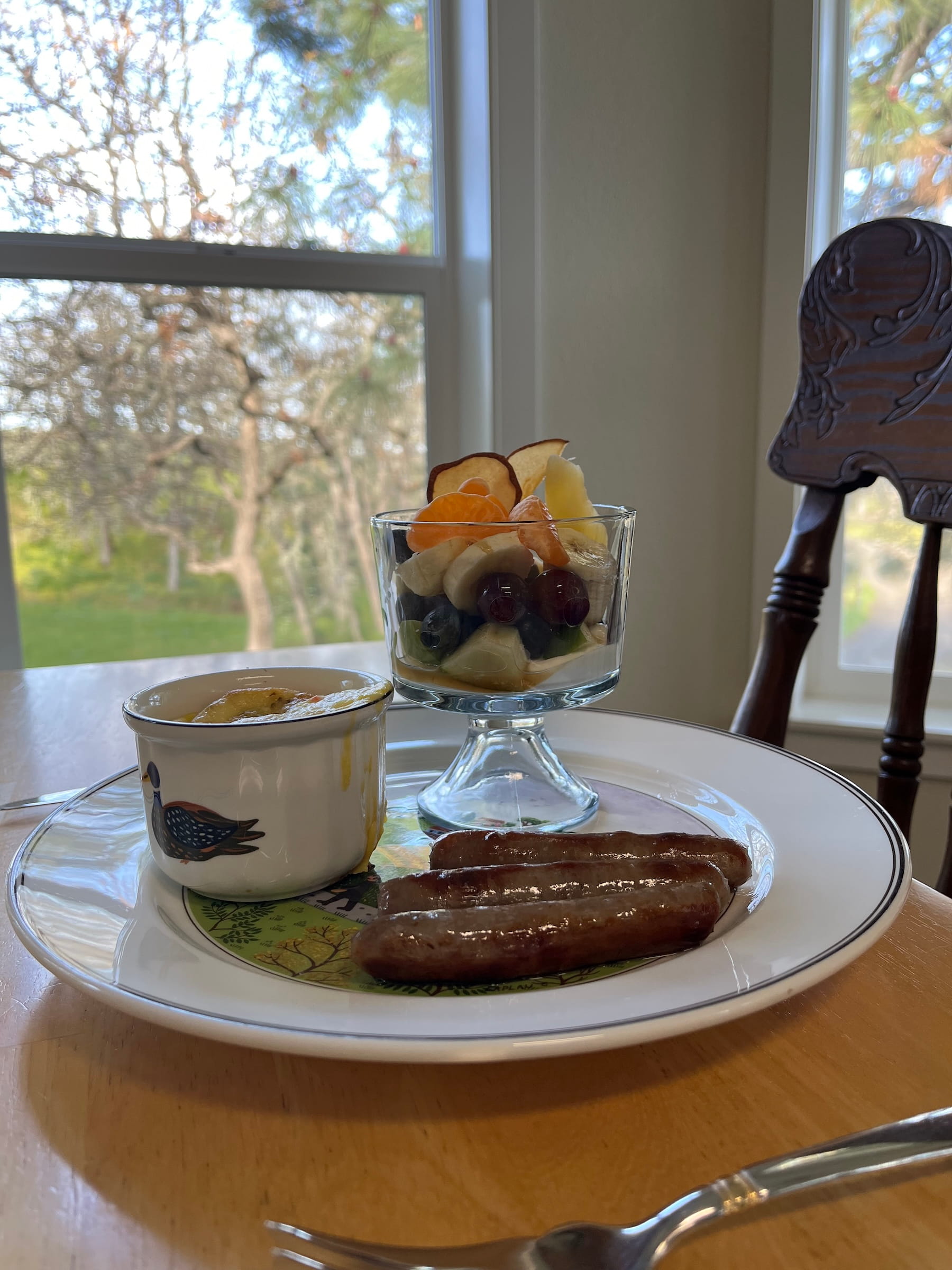 In-home meal: (1-10 guests) Meet Lori and Jeff in their welcoming home set on 10 scenic acres in Lyle, Washington, with sweeping views of Mt. Adams, and enjoy a private dining experience in the Columbia River Gorge. Begin your experience with a welcome drink, followed by a stroll around their property and orchard, where you may pick fresh fruit when in season. Choose a morning brunch featuring a fluffy egg dish made with farm-fresh eggs, served with bacon or sausage, a colorful fruit cup, and a homemade dessert served with coffee or tea. Or opt for an evening dinner with a fresh seasonal salad, comforting dishes like chicken pot pie or applesauce meatloaf, and a homemade apple crisp made with fruit from their orchard, paired with a local wine. Perfect for couples, families, and travelers seeking an authentic local food experience in Washington, this relaxed meal offers the chance to connect with welcoming hosts and enjoy classic American comfort food prepared with local Pacific Northwest ingredients in a real home setting. Vegetarians are welcome.