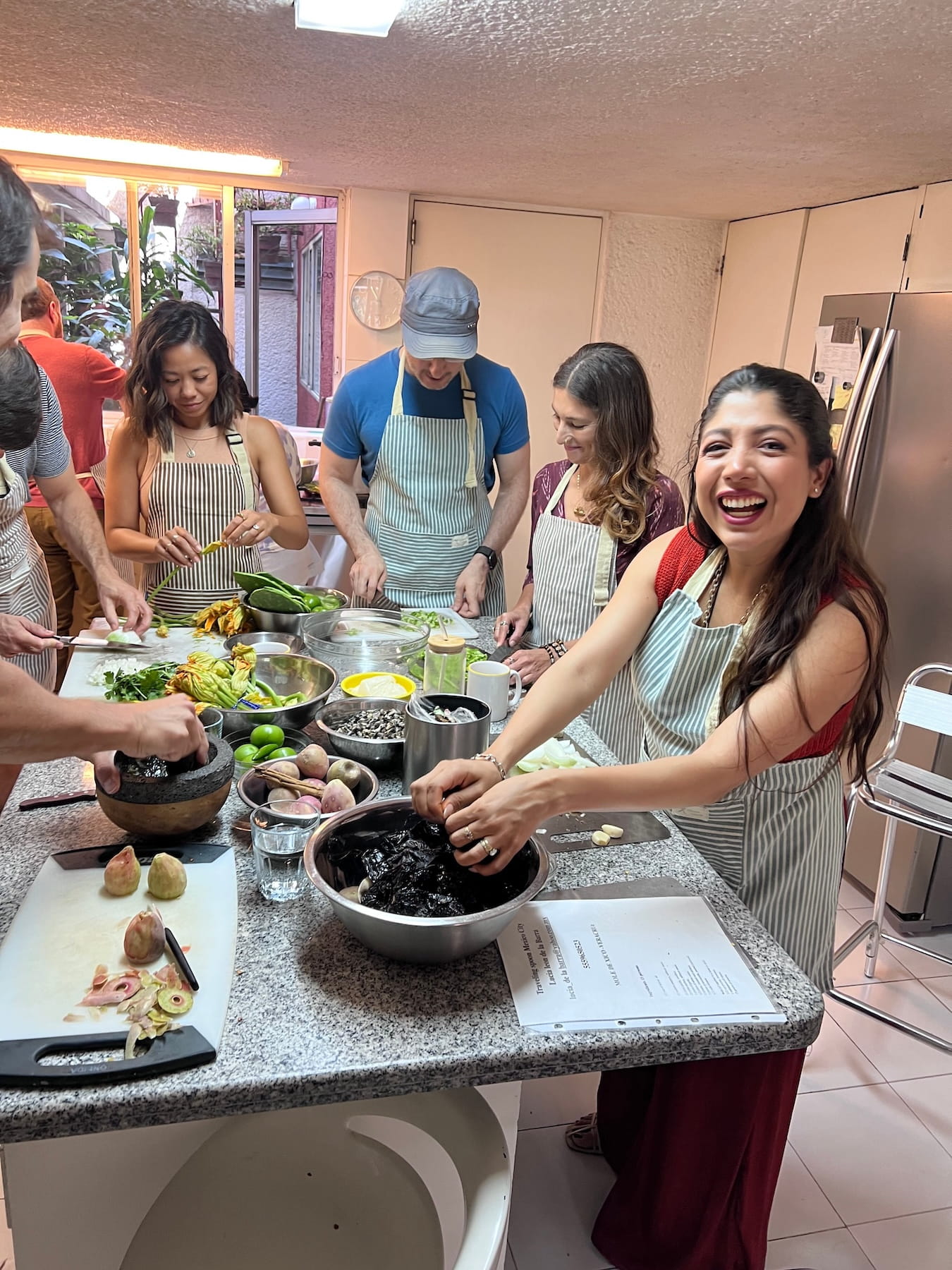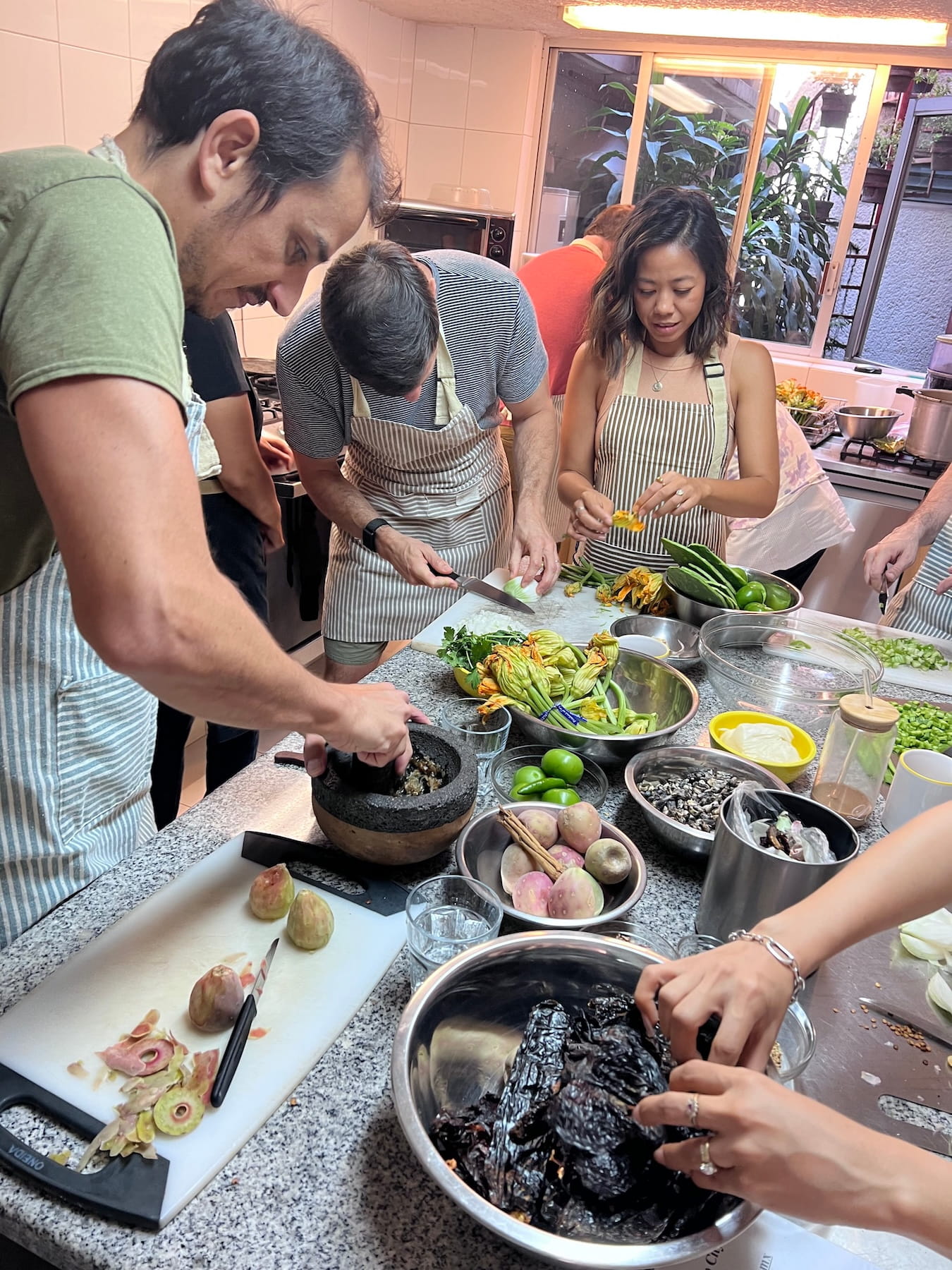 Just getting to converse with Lucia and be in her gorgeous home would have been worth the expense. In addition to that, we made and shared a meal that blew our minds! The flavors of the sautéed fungus, green salsa, and mole delighted our senses. We peppered Lucia with questions all evening, and if we annoyed her, we couldn’t tell! She was so generous with her knowledge about art, history, spirituality, her expertise in gastronomy, and she made several recommendations about things to try during our visit. We had a full itinerary during our visit to Mexico City, and this experience was definitely one of the top highlights of the trip.- Gary June 23, 2025