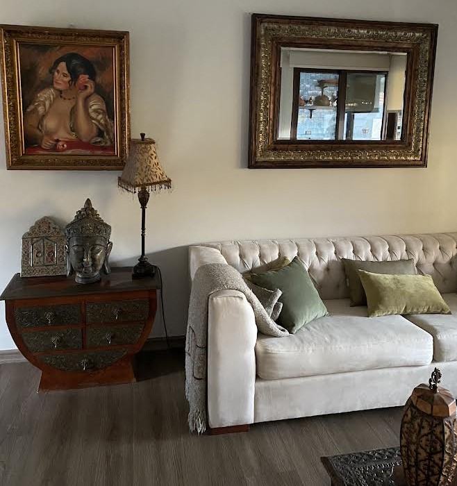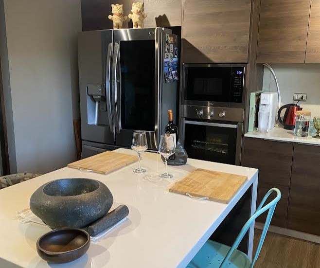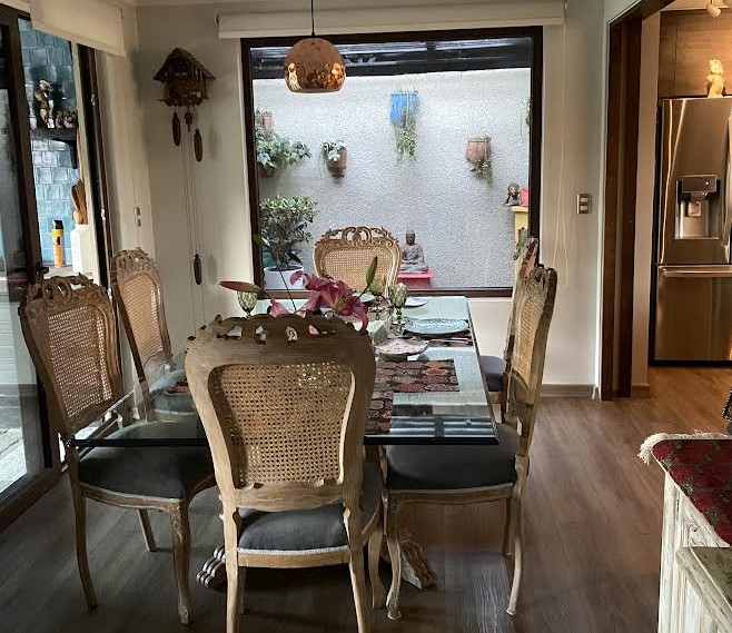 Patty and her husband Enrique live in a gorgeous, sprawling ranch-style home in Colina, outside of Santiago in the countryside. Her countryside home is a 45-min Uber drive from central Santiago and costs about 22,000 pesos (~$25) to get to her home. Patty's property boasts fruit and nut trees of every variety (from mandarin to fig, pomegranate to walnut) and a huge vegetable and herb garden. You will be welcomed with open arms and a bottle of Carménere into a house that is both modern and filled with old-world charm. The tall ceilings, gilded paintings, and Victorian furniture are magnificent, but the wood stove, inviting earth-tones, and greenery give the place a feeling of warmth alongside luxury. The kitchen is large and modern, with an island that allows everyone to congregate easily and cook together. The shelves are heaped with the produce collected from Patty’s garden. Patty’s husband has spent much of his professional life traveling for work, as is evident by the display of art pieces from all over the world, from a traditional Austrian Cuckoo clock to stone statues from China. Patty lived in Canada for 20 years and works as a systems analyst.